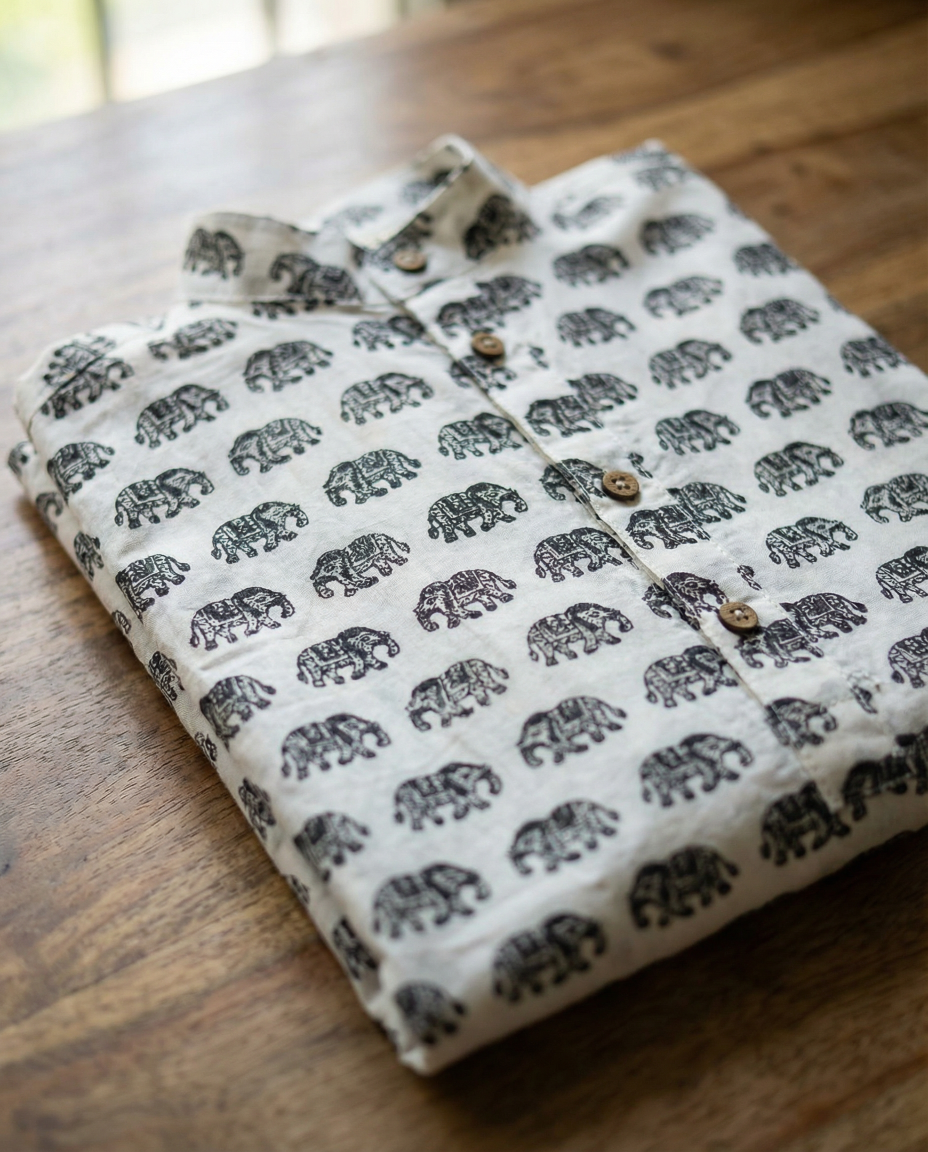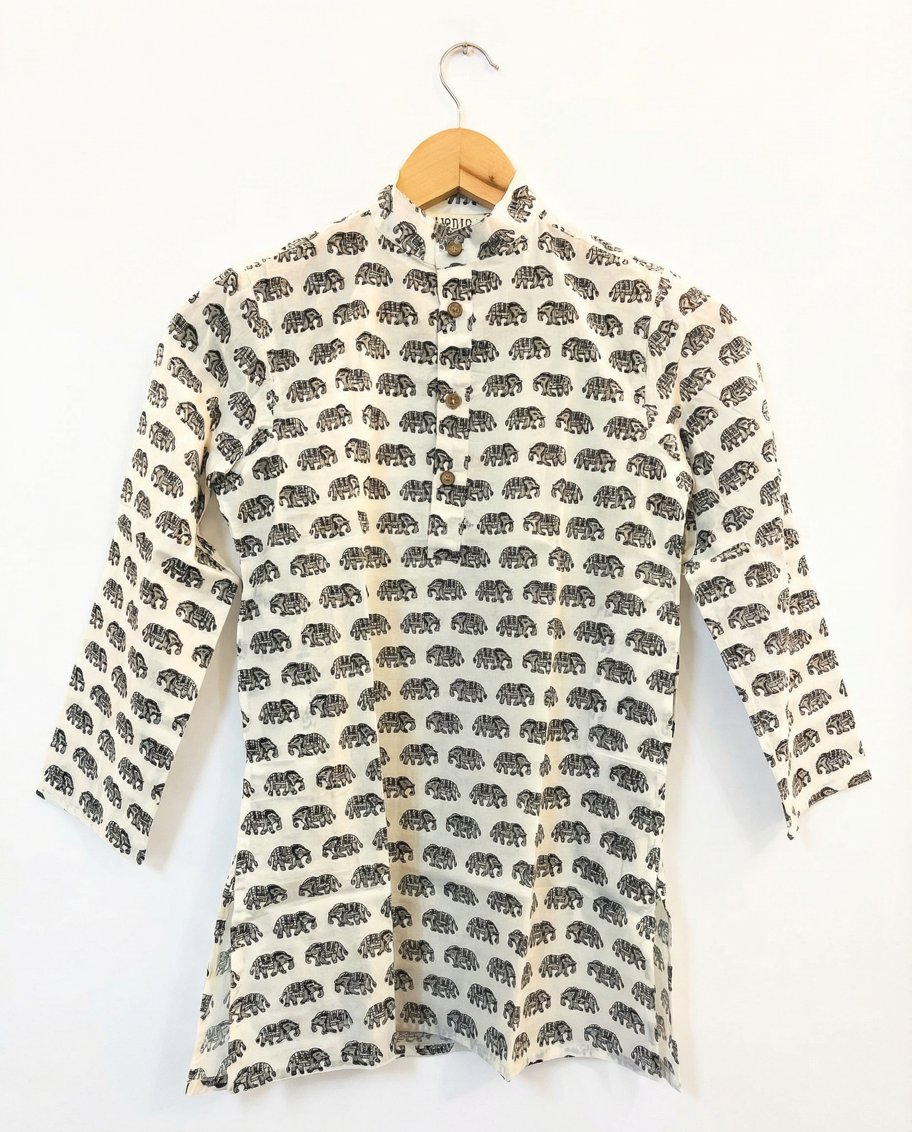 In the colorful lanes of Sanganer, near Jaipur, skilled artisans bring this kurta to life using age-old printing traditions. Each elephant is hand-printed with care, carrying forward Rajasthan’s rich craft heritage into your child’s everyday moments.