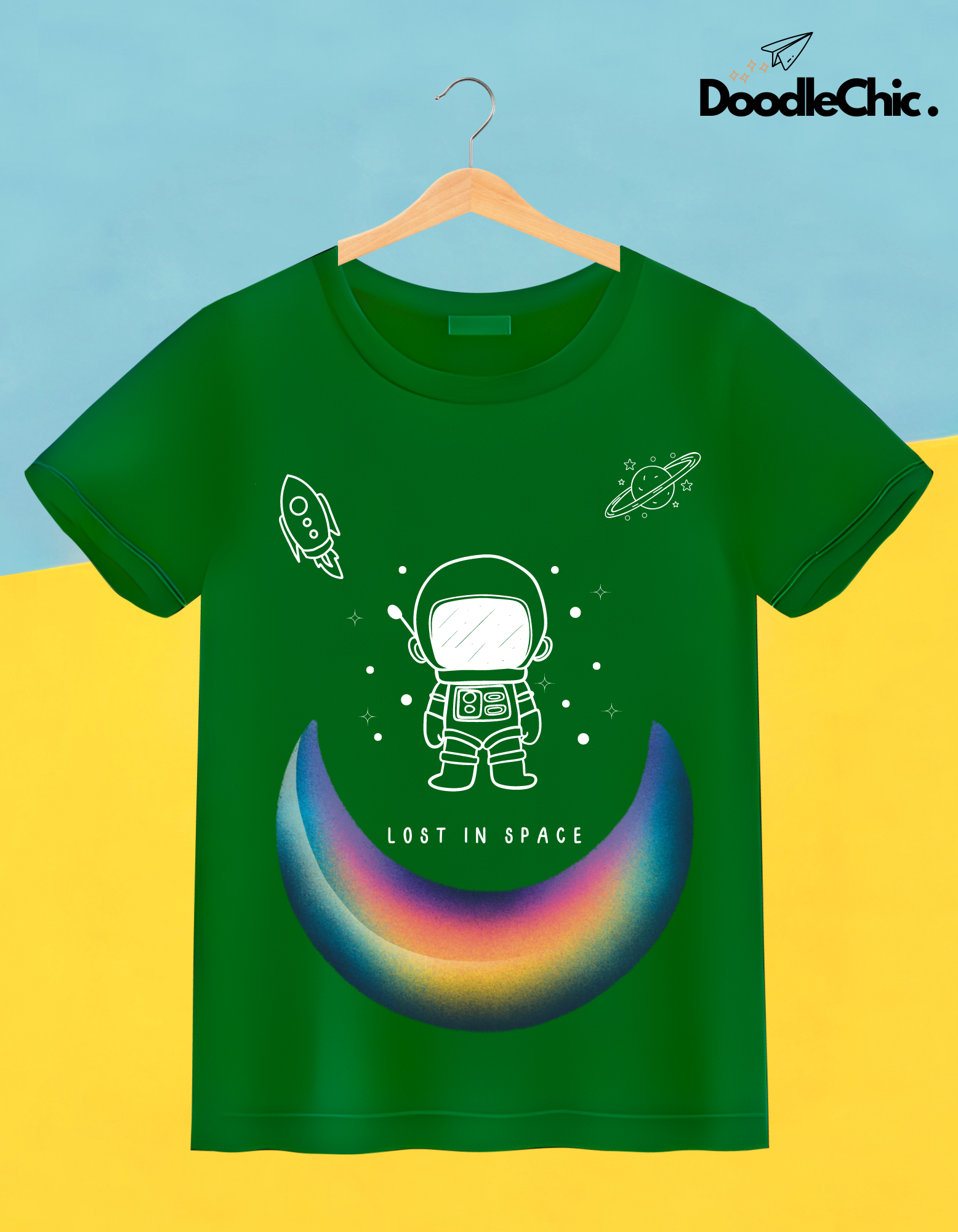 Embark on a cosmic journey with our 'Lost in Space' theme, where imaginative illustrations transport your little ones to galaxies far, far away. Each detail is a brushstroke of creativity, bringing the wonders of the universe to life. Let your kids roam freely in style and eco-conscious comfort – because at DoodleChic, we believe that every space explorer deserves to feel out-of-this-world fabulous!