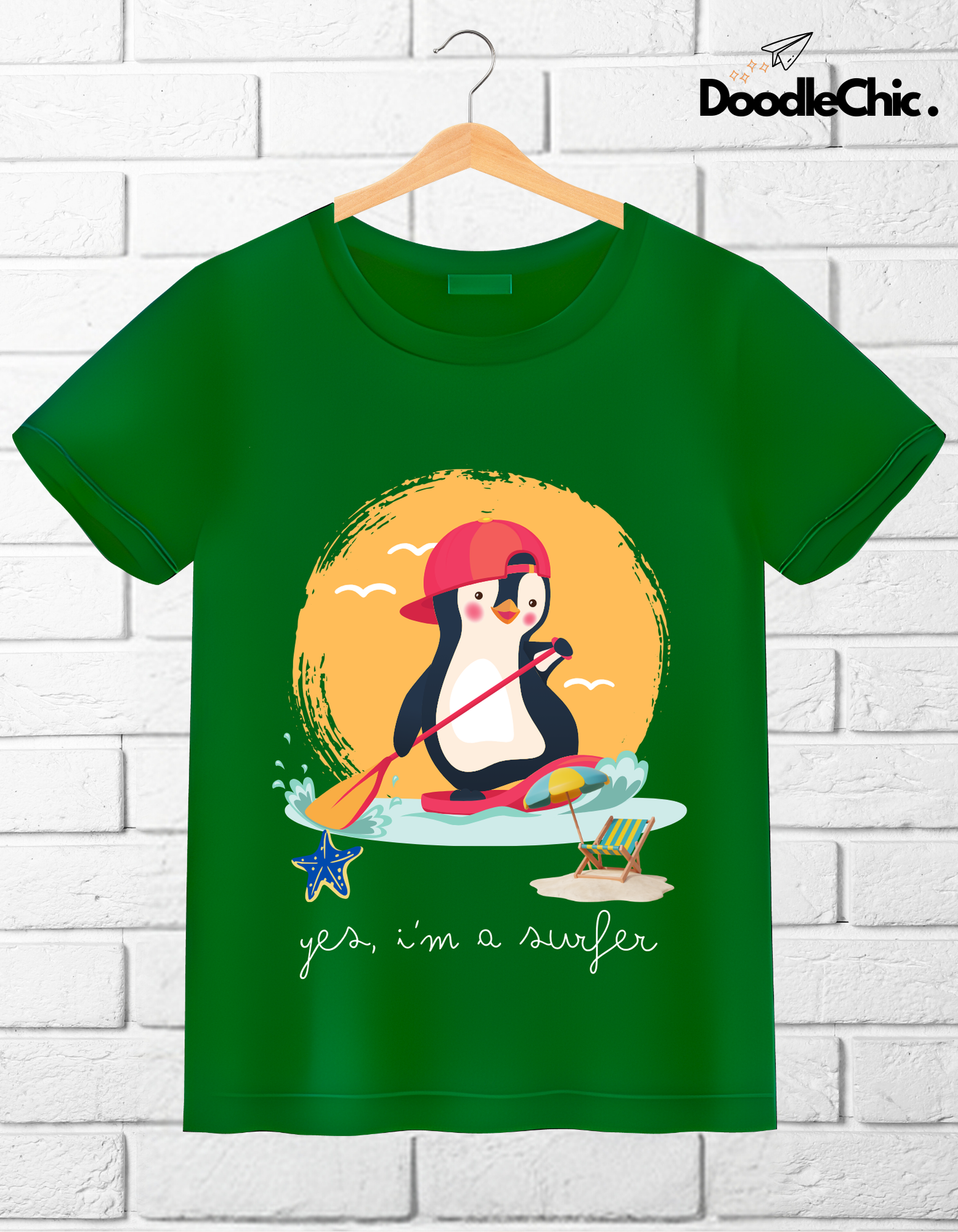 Let your kids express their unique style while embracing eco-friendly fashion. At DoodleChic, we believe in creating memories through clothing, and our 'Penguin Surfer' tee is the perfect canvas for endless adventures and boundless imagination. Dress your little explorer in comfort and style, and let the aquatic journey begin!